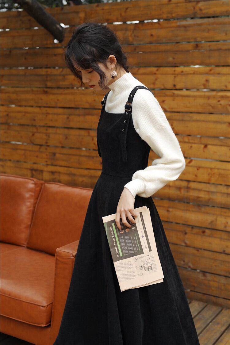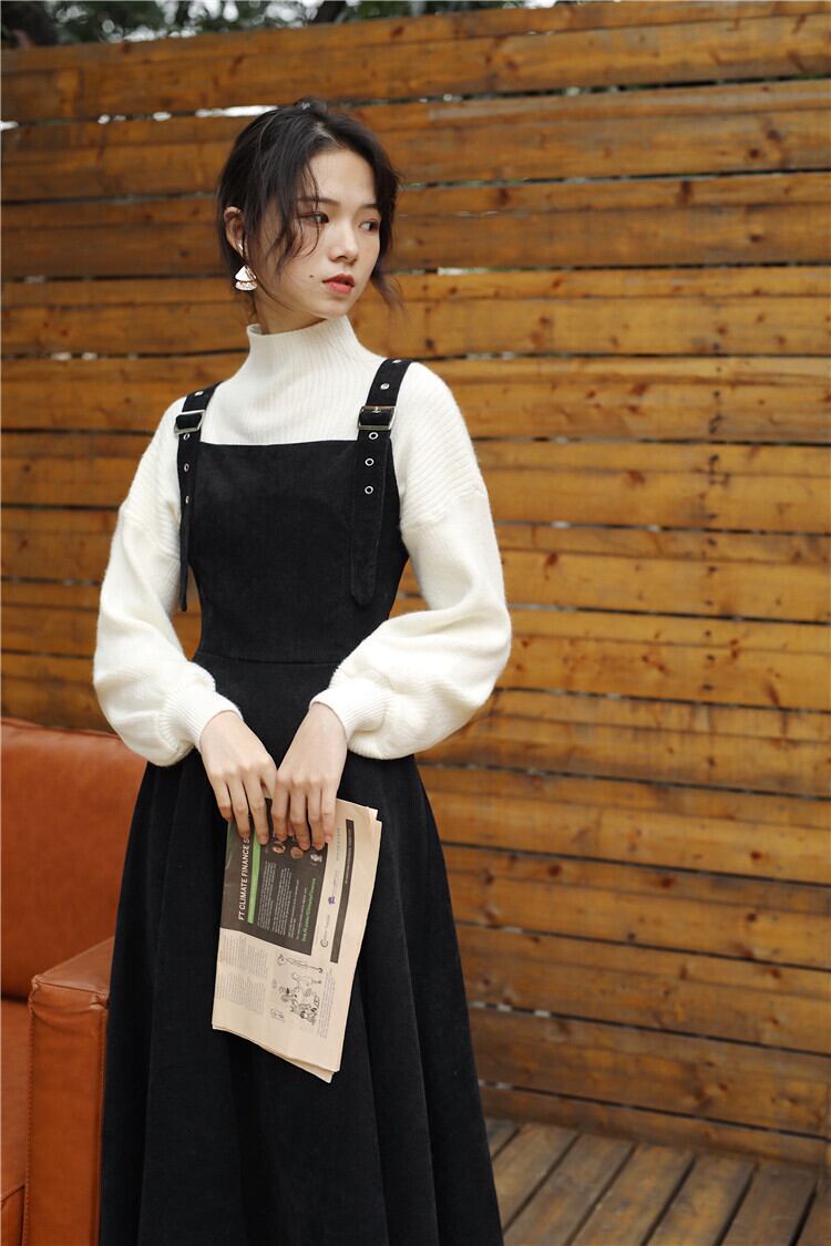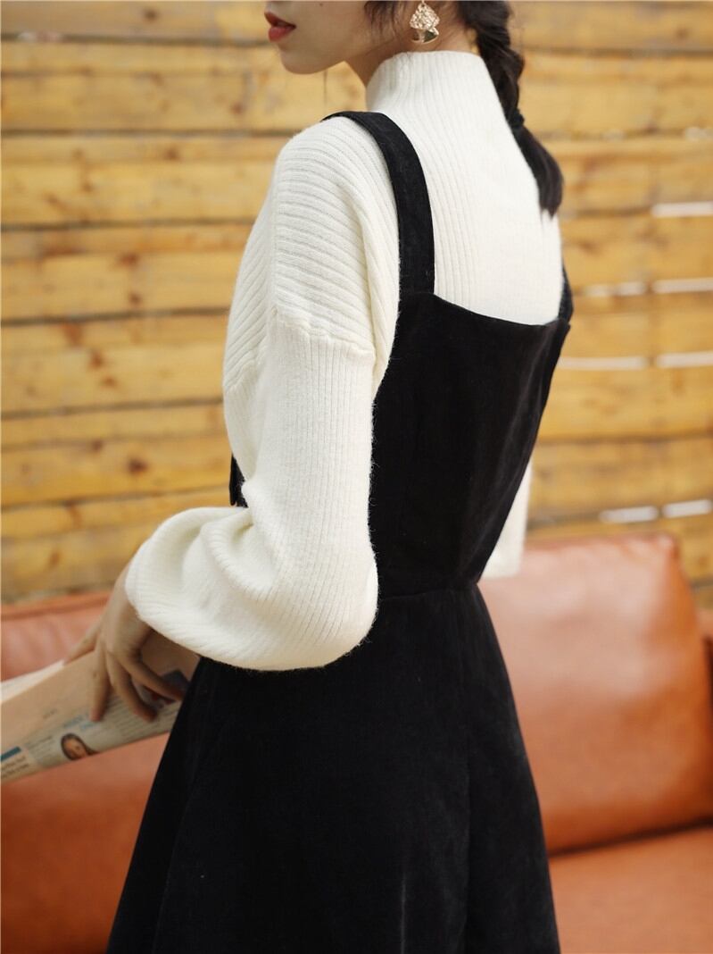 色:白セーター+黒サスペンダースカート