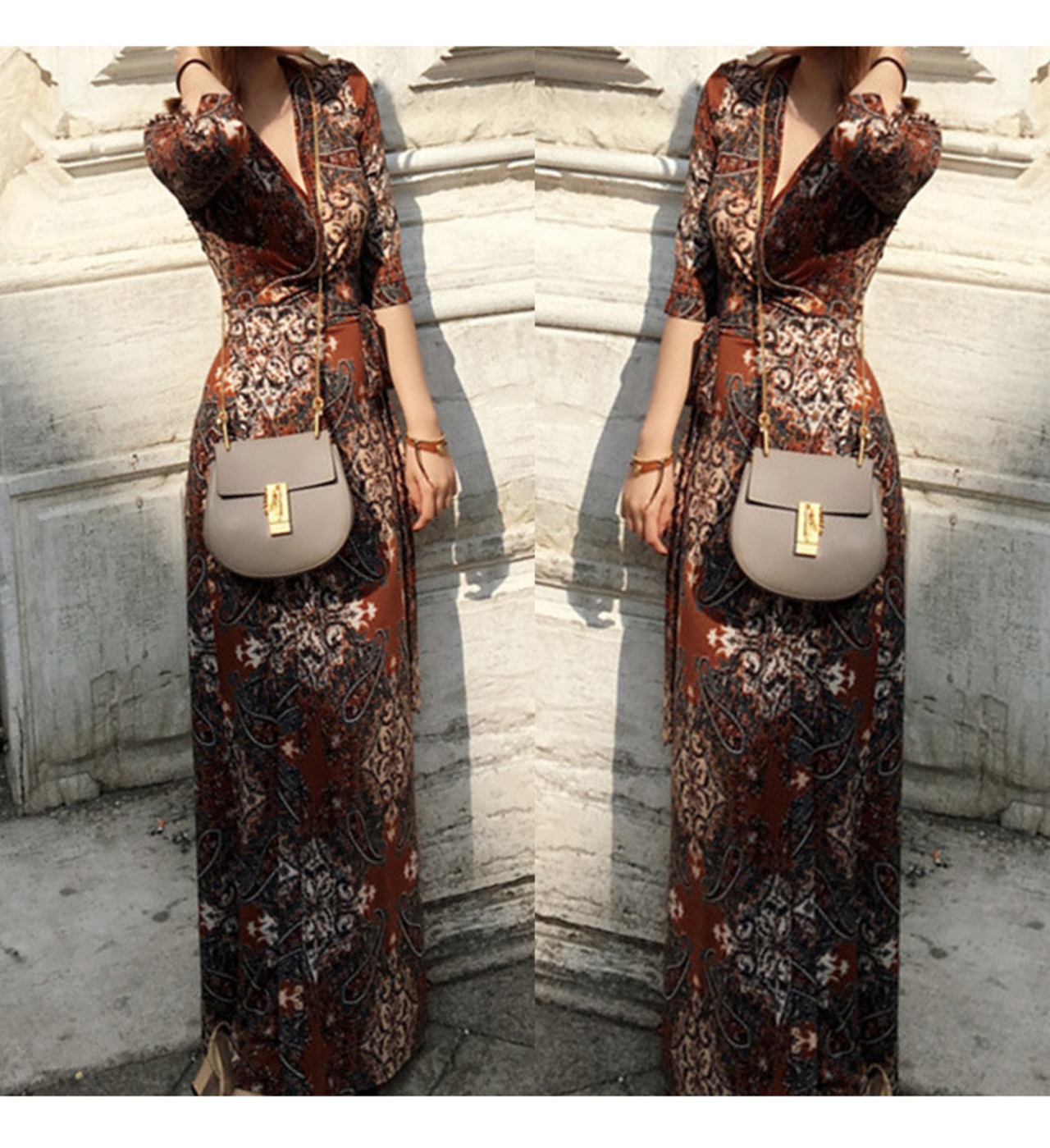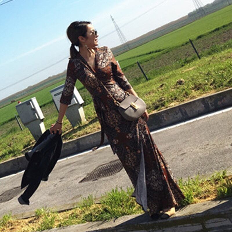 色:ブラウンカラーレスロングプリント7ポイントスリーブ