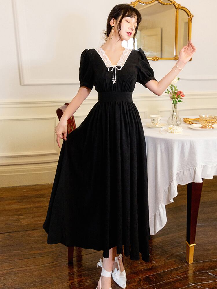 ♥♡♥ スタンダード♡ドレス ワンピースレーススカート サマー レトロ 夏物 フラワーデザイン スクウェア ♥♡♥韓国系 ガーリー お呼ばれ カジュアル フェミニン エレガント ビジュー 清楚 オルチャン AA3281309 | miel style clothing