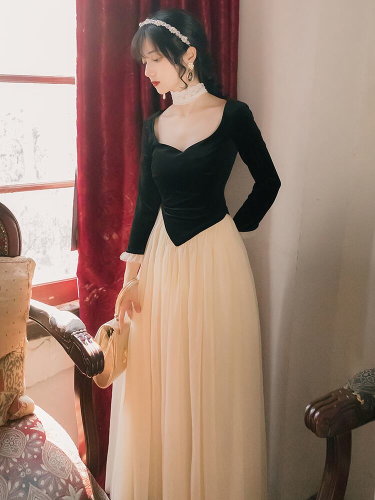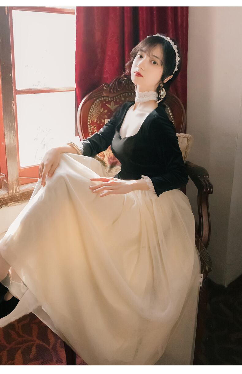 ♥♡♥ スカート ブラックコート ロングゴールドベルベット エレガント ♥♡♥韓国系 ガーリー お呼ばれ カジュアル フェミニン エレガント ビジュー 清楚 オルチャン AA3410987