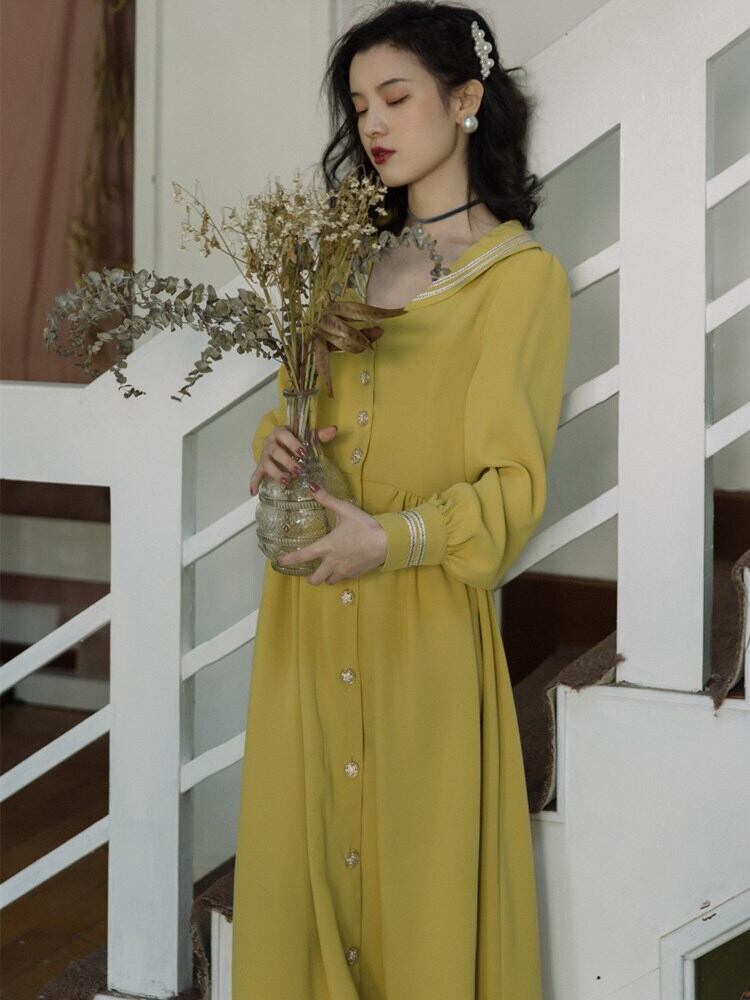 ♥♡♥ スカート スタンダードオレンジネイビー♡ロング レトロ ♥♡♥韓国系 ガーリー お呼ばれ カジュアル フェミニン エレガント ビジュー 清楚 オルチャン AA5030120