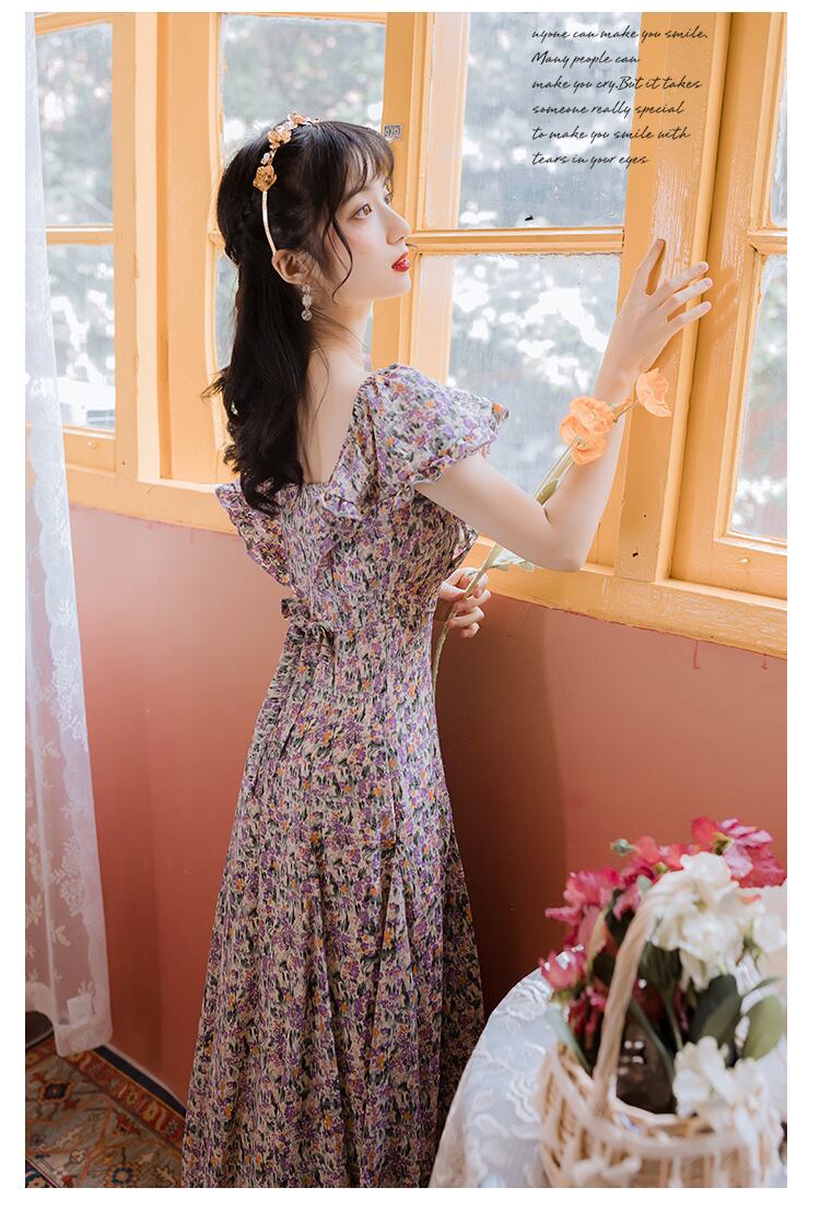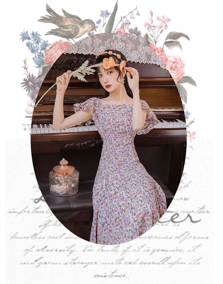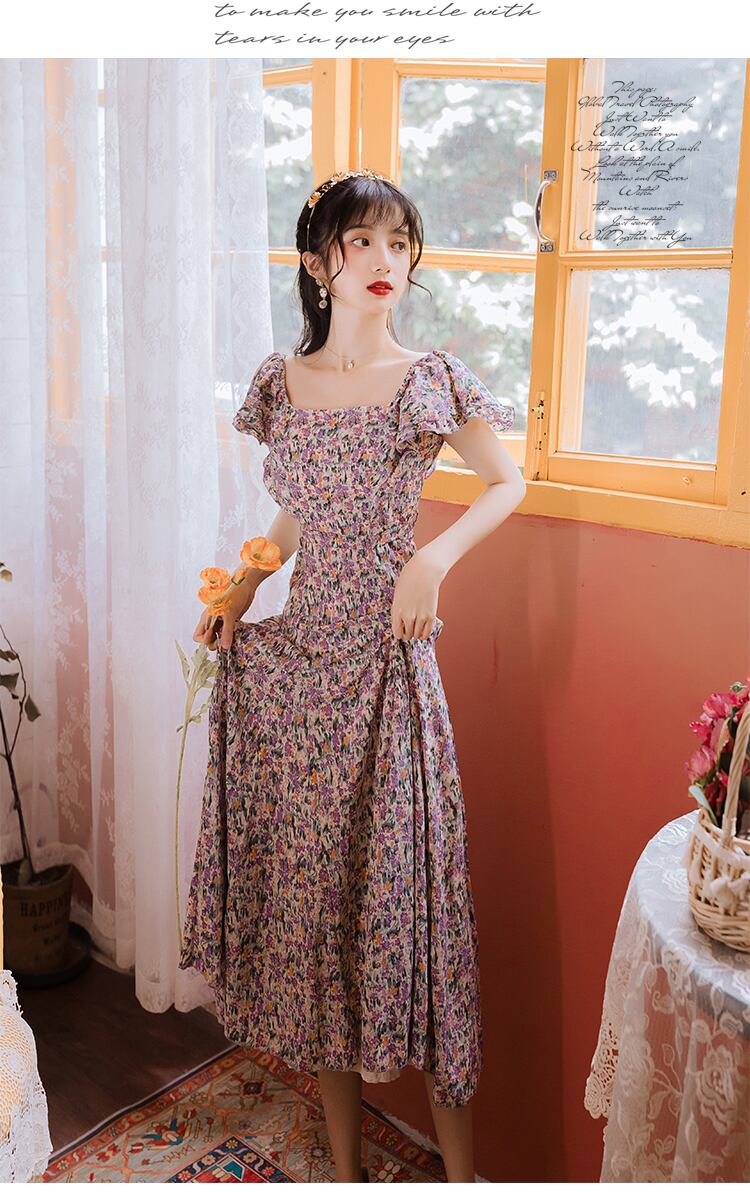 ♥♡♥ スカート ドレス ワンピースマキシ花柄サマー 夏物 パープル ♥♡♥韓国系 ガーリー お呼ばれ カジュアル フェミニン エレガント ビジュー 清楚 オルチャン AA1252046