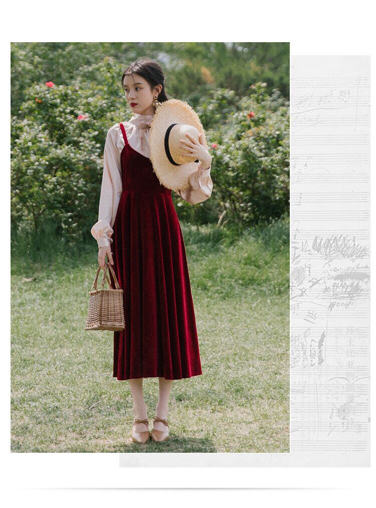 ♥♡♥ スタンダードシャツブラウススカート ロング レトロ ♥♡♥韓国系 ガーリー お呼ばれ カジュアル フェミニン エレガント ビジュー 清楚 オルチャン AA5490307