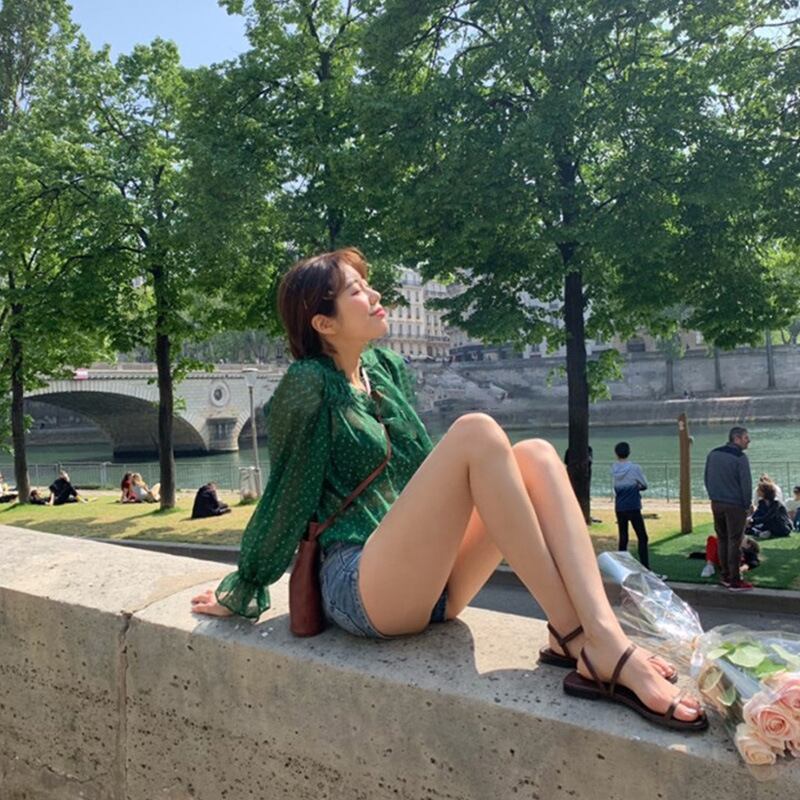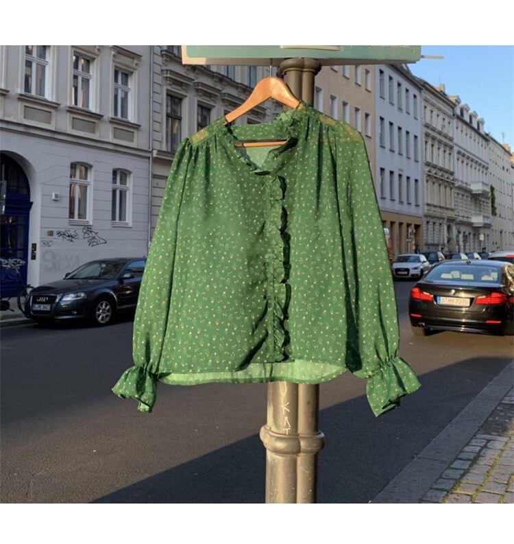 ♥♡♥ 花柄シフォンシャツブラウススリーブ長袖トップス ロング ♥♡♥韓国系 ガーリー お呼ばれ カジュアル フェミニン エレガ ント ビジュー 清楚 オルチャン CC7253369 | miel style clothing
