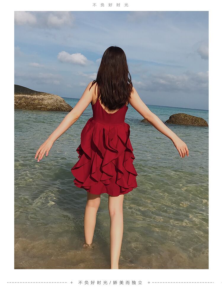 ♥♡♥ スカート レッド ビーチ ♥♡♥韓国系 ガーリー お呼ばれ カジュアル フェミニン エレガント ビジュー 清楚 オルチャン AA3192890