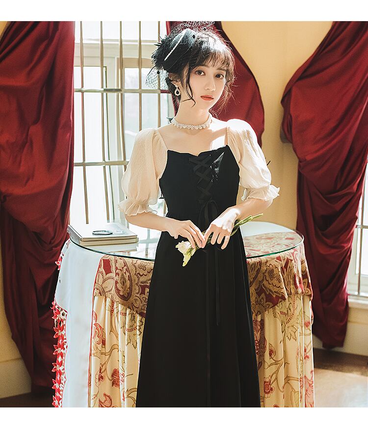 ♥♡♥ スタンダード♡ブラック レトロ フラワーデザイン スクウェア ♥♡♥韓国系 ガーリー お呼ばれ カジュアル フェミニン エレガント ビジュー 清楚 オルチャン AA5719805 | miel style clothing