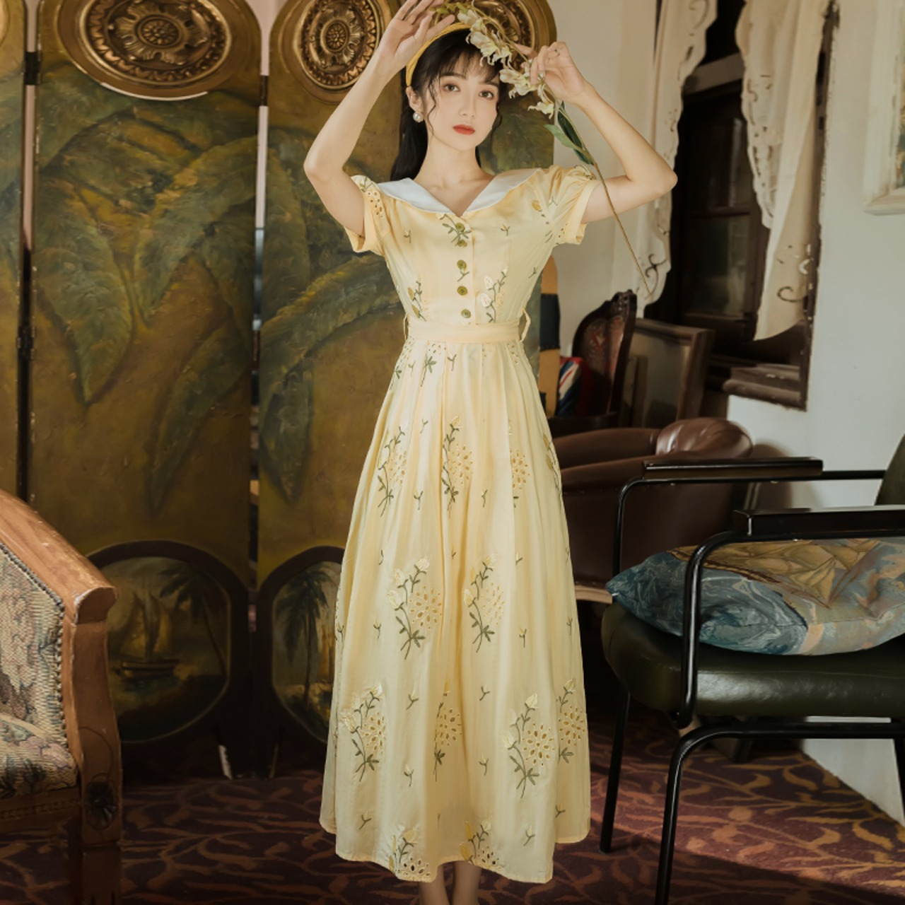 ♥♡♥ イエロースカート ♡スリーブ レッド 刺繍 スウィート ♥♡♥韓国系 ガーリー お呼ばれ カジュアル フェミニン エレガント ビジュー 清楚 オルチャン AA7218252