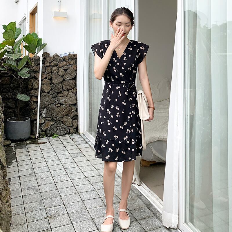 ♥♡♥ スタンダードVネックスカート レトロ シルク ♥♡♥韓国系 ガーリー お呼ばれ カジュアル フェミニン エレガ ント ビジュー 清楚 オルチャン CC3982234 | miel style clothing