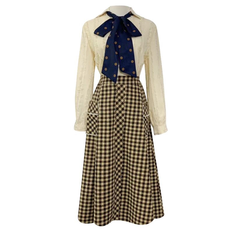 ♥♡♥ スタンダードシャツブラウスチェック柄スカート レトロ ♥♡♥韓国系 ガーリー お呼ばれ カジュアル フェミニン エレガント ビジュー 清楚 オルチャン AA3334423 | miel style clothing