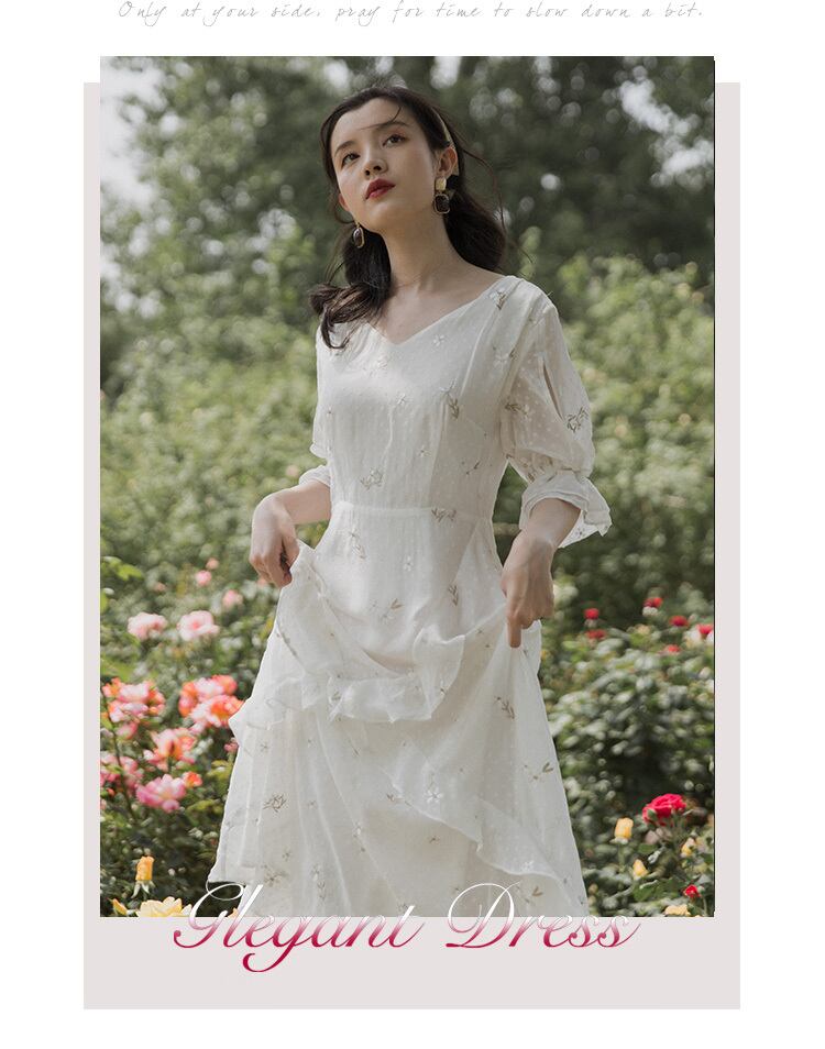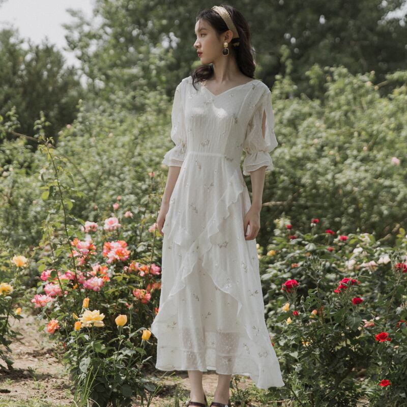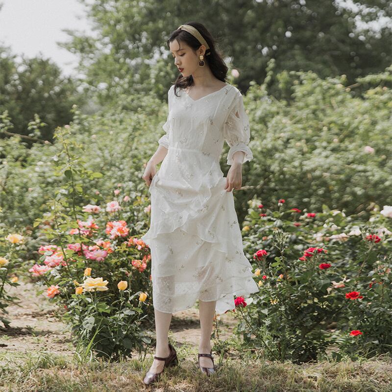 小さな花柄で可愛さをちょいプラス♪マキシシフォンワンピース レトロ 韓国系 ガーリー お呼ばれ カジュアル フェミニン AA2585363