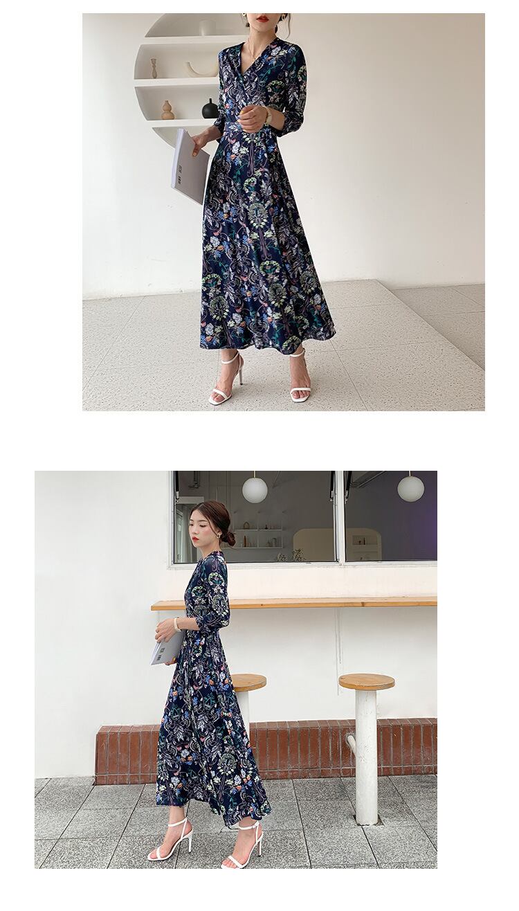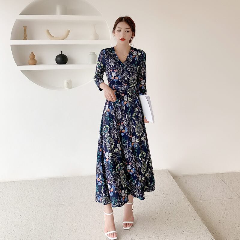 ♥♡♥ ♡ワンピースロングスカート ブラック花柄七部袖スリーブレース フラワーデザイン ♥♡♥韓国系 ガーリー お呼ばれ カジュアル フェミニン エレガ ント ビジュー 清楚 オルチャン CC1057492 | miel style clothing