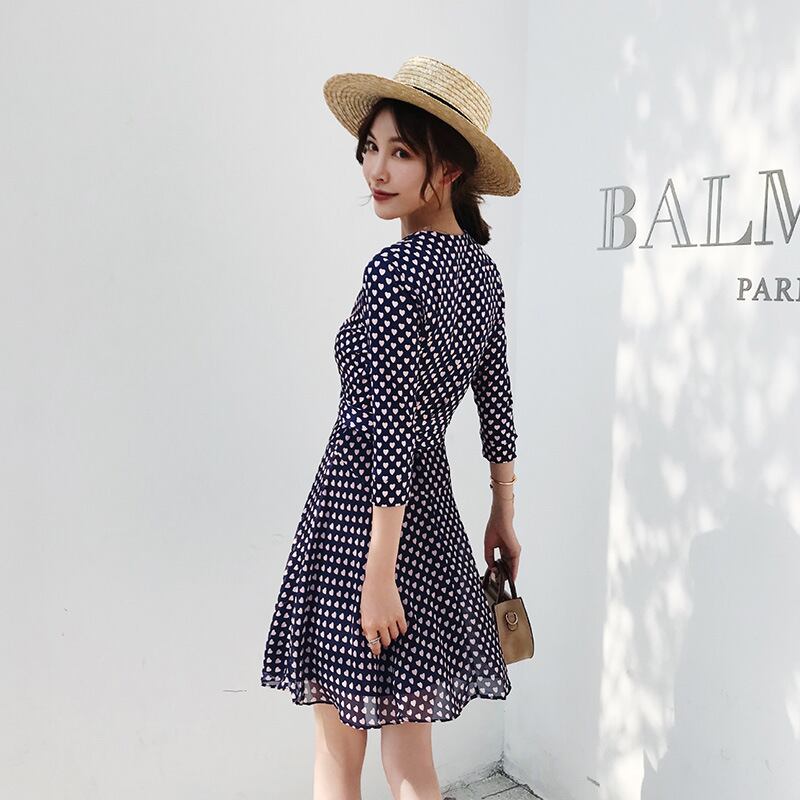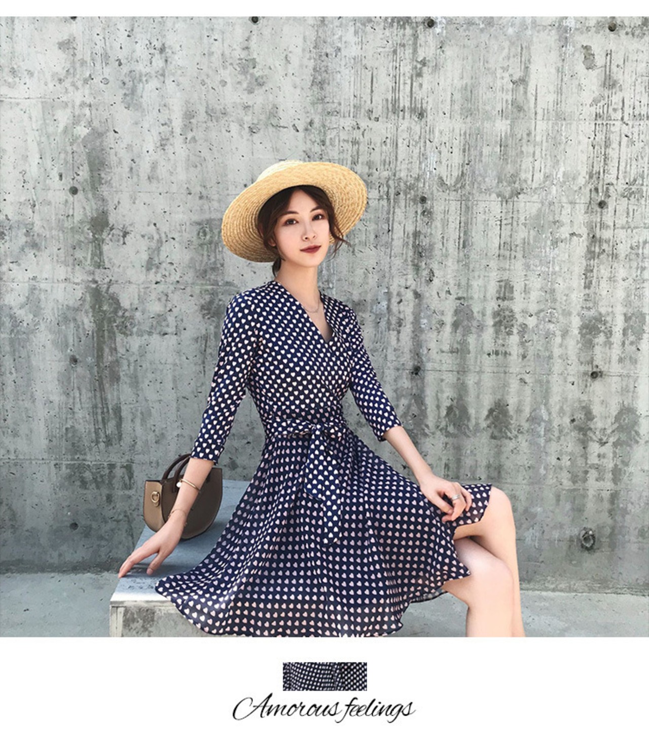 ♥♡♥ ドレス ワンピースプリントスリーブスカート Vネックカジュアル ♥♡♥韓国系 ガーリー お呼ばれ カジュアル フェミニン エレガ ント ビジュー 清楚 オルチャン CC1359065 | miel style clothing