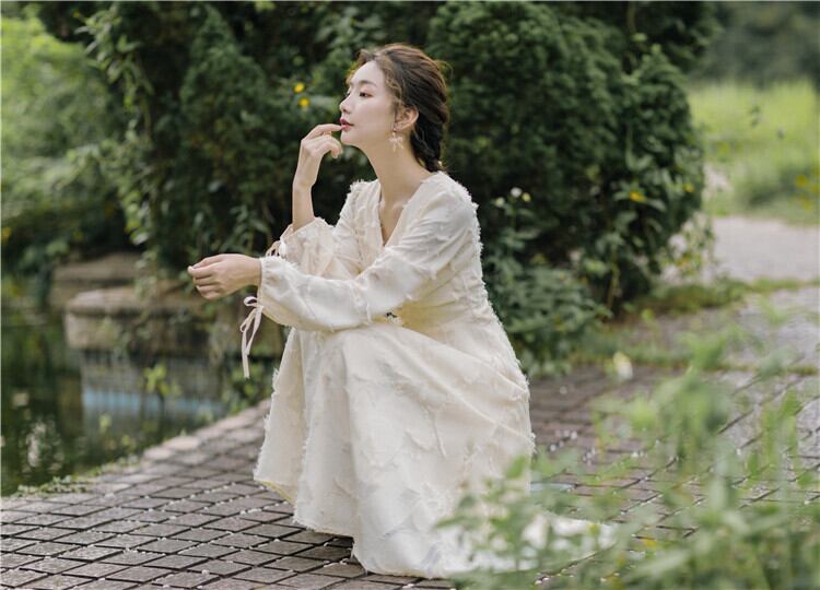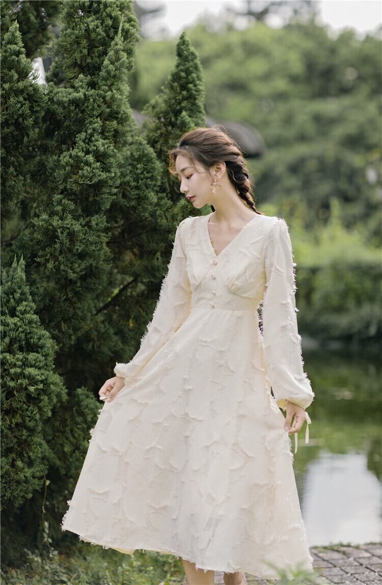 ♥♡♥ スカート 膝丈 ひざ丈Vネック ♥♡♥韓国系 ガーリー お呼ばれ カジュアル フェミニン エレガント ビジュー 清楚 オルチャン AA1578504 | miel style clothing