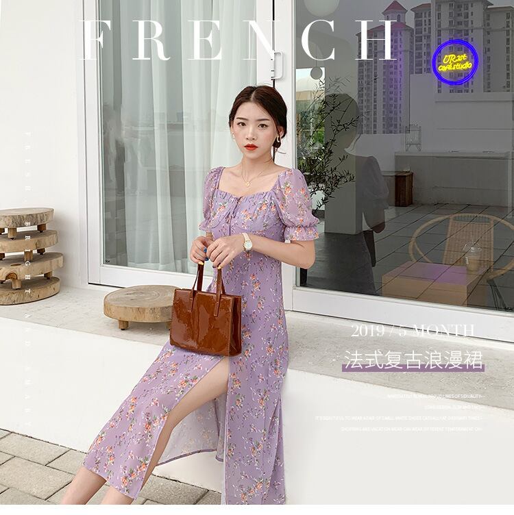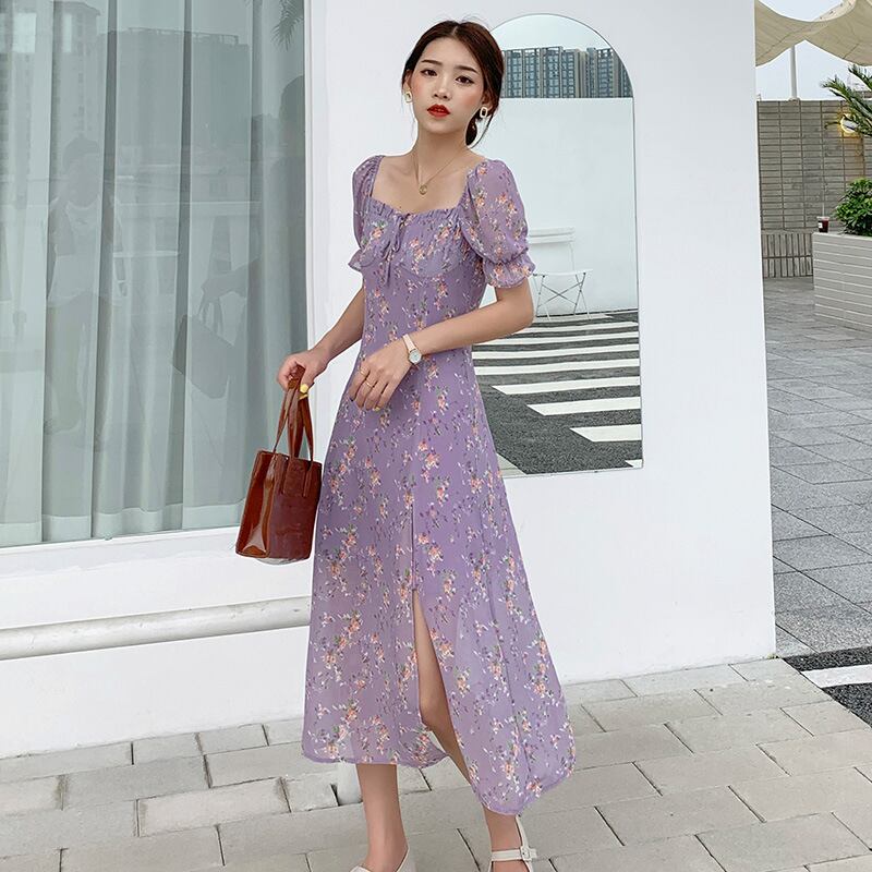 ♥♡♥ 花柄シフォンスタンダードサイドスリーブ今年流行☆スカート レトロ ♥♡♥韓国系 ガーリー お呼ばれ カジュアル フェミニン エレガ ント ビジュー 清楚 オルチャン CC6314901 | miel style clothing