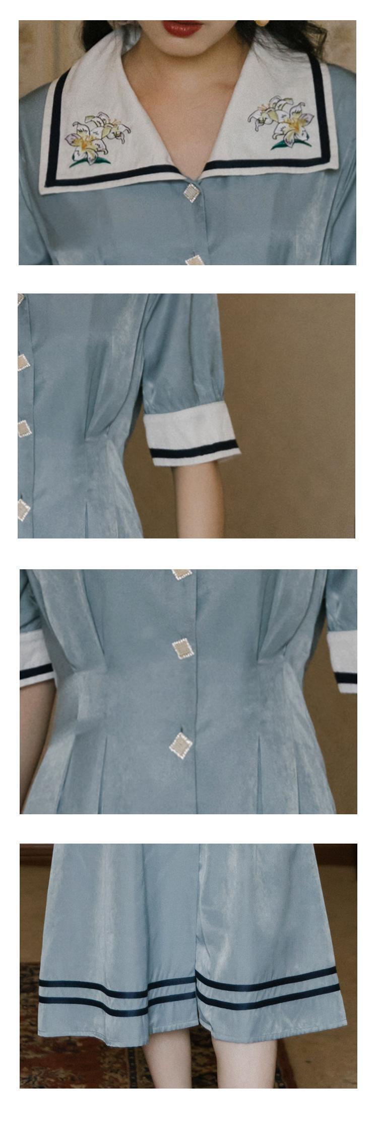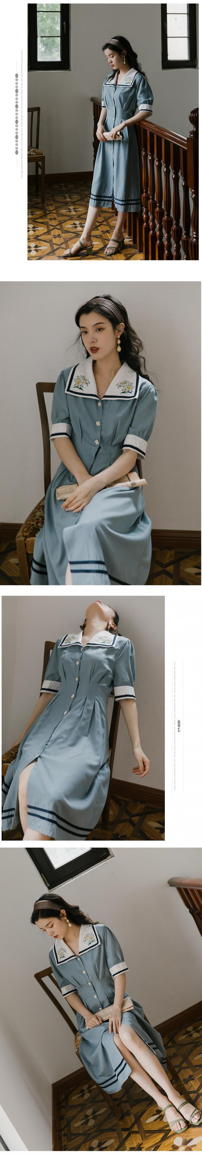 ♥♡♥ スタンダード★ネイビー♡スカート レトロ フラワーデザイン ♥♡♥韓国系 ガーリー お呼ばれ カジュアル フェミニン エレガント ビジュー 清楚 オルチャン AA0269323