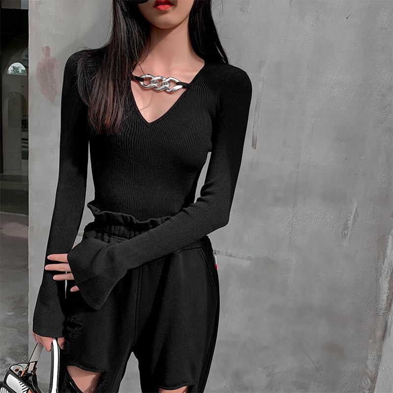 ♥新品 ブラックセーター ラウンドネックプルオーバー 長袖スリーブシャツブラウス ロング 韓国系 ガーリー お呼ばれ カジュアル フェミニン エレガント 同窓会 女子会 海 食事会 合コン パーティー BB86672066795 | miel style clothing
