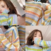♥新品 ストライプセーター ♥カワイイ♥ラウンドネックプルオーバー トップス ロング 韓国系 ガーリー お呼ばれ カジュアル フェミニン エレガント 同窓会 女子会 海 食事会 合コン パーティー BB9990877