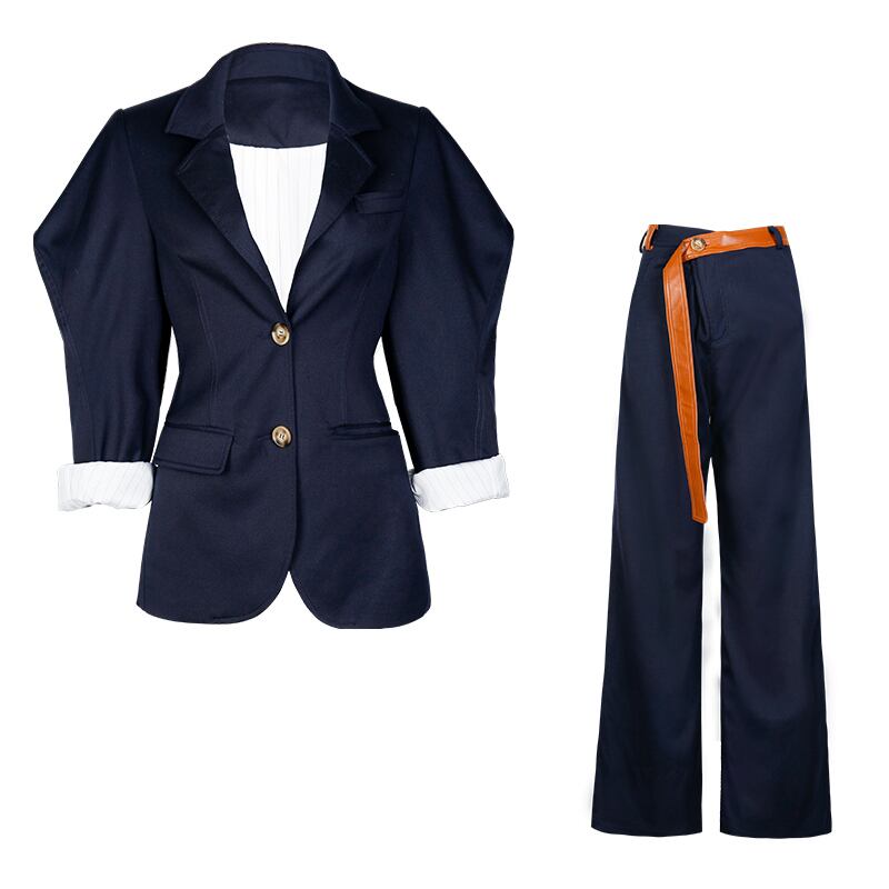 色:シルクスカーフ付きダイランスーツ,青いズボン,シルクスカーフ付きのデザートグレースーツ,デザートグレイトラウザーズ,青いスカーフ
