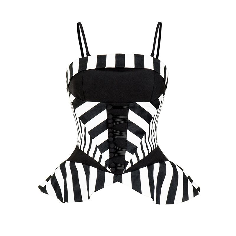♥新品 ブラック白ストライプトップス スリム♥カワイイ♥ ホワイト コットン 韓国系 ガーリー お呼ばれ カジュアル フェミニン エレガント 同窓会 女子会 海 食事会 合コン パーティー BB5064258 | miel style clothing