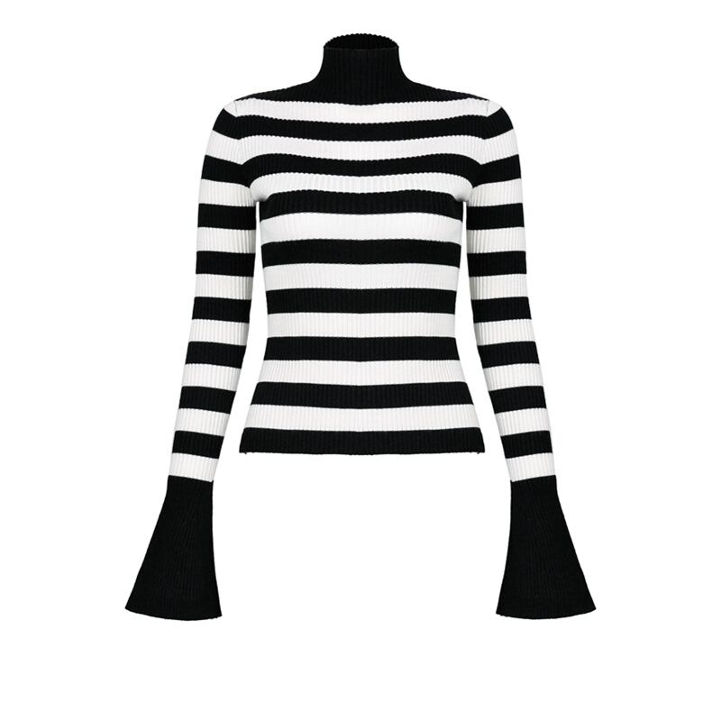 ♥新品 セーター ブラック白ストライプカフシャツブラウス ホワイト 韓国系 ガーリー お呼ばれ カジュアル フェミニン エレガント 同窓会 女子会 海 食事会 合コン パーティー BB6896387
