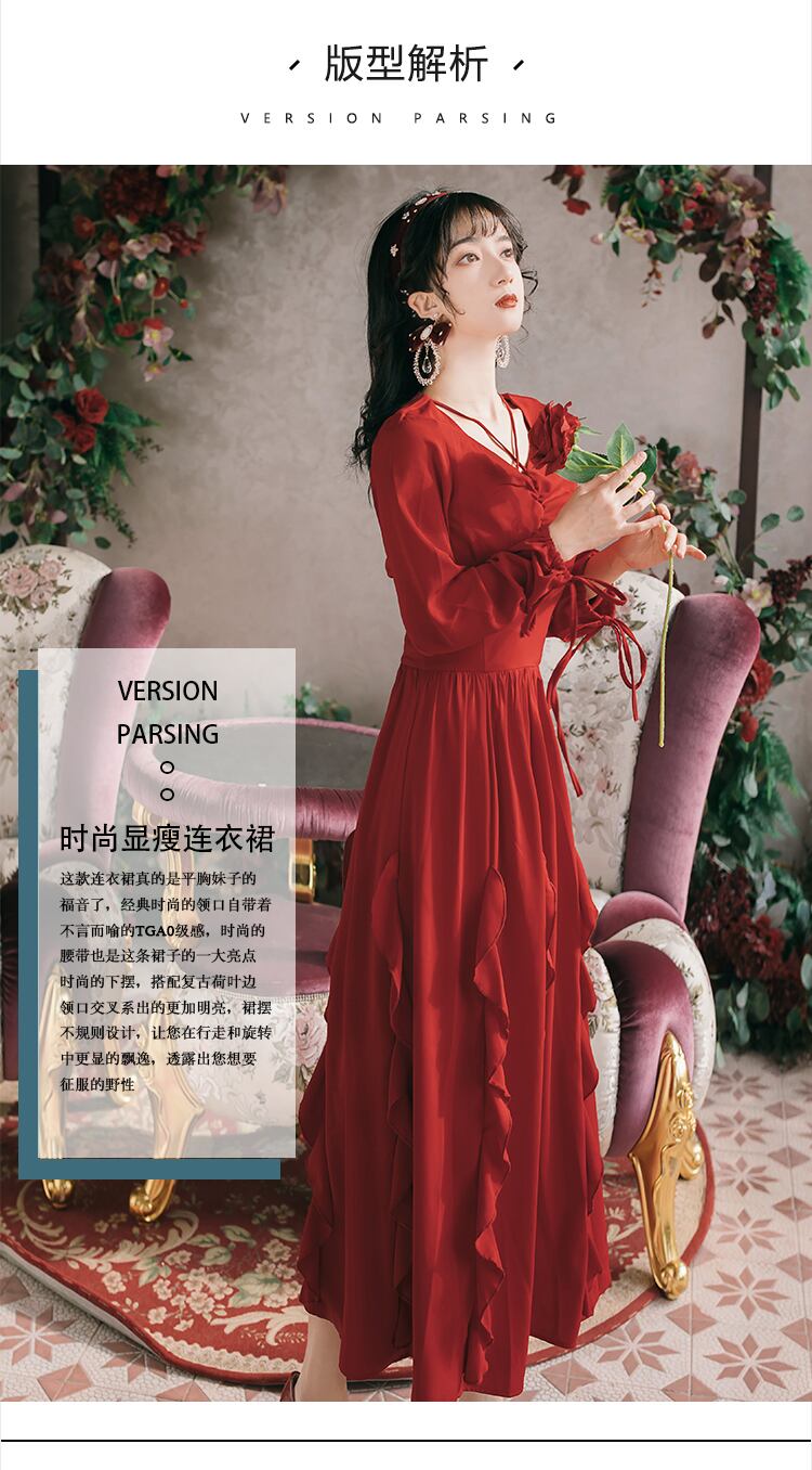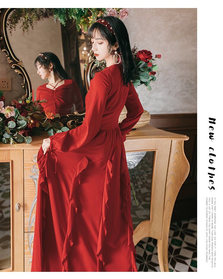 ♥♡♥ スタンダード♡レッドスカート ♥カワイイ♥ロング レトロ ♥♡♥韓国系 ガーリー お呼ばれ カジュアル フェミニン エレガント ビジュー 清楚 オルチャン AA6882417 | miel style clothing