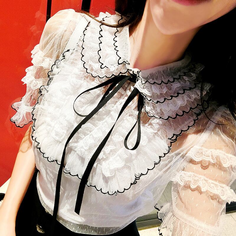♥新品 白レーストップス リボン ホワイト スウィート 韓国系 ガーリー お呼ばれ カジュアル フェミニン エレガント 同窓会 女子会 海 食事会 合コン パーティー BB6200648 | miel style clothing