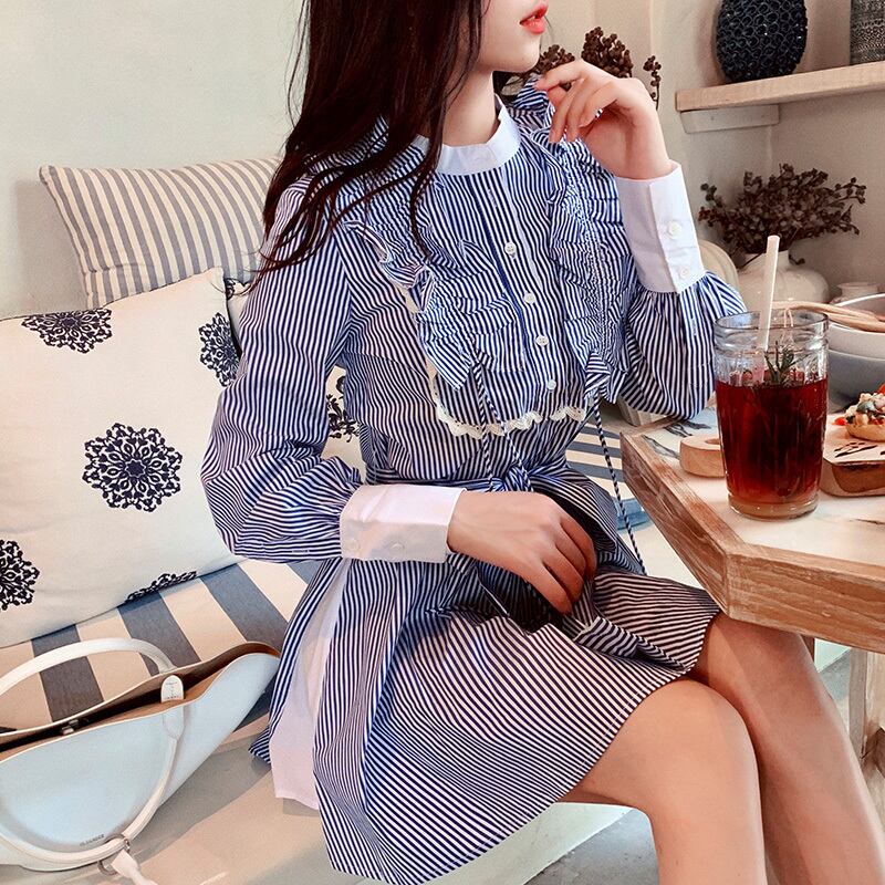 ♥新品 スタンダードブルー白ストライプ ホワイト レトロ 韓国系 ガーリー お呼ばれ カジュアル フェミニン エレガント 同窓会 女子会 海 食事会 合コン パーティー BB6901382