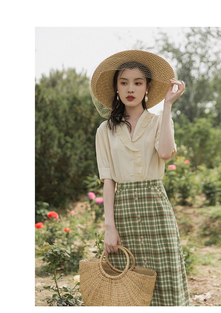 ♥♡♥ スカート グリーンチェック柄Aラインシャツブラウス♥カワイイ♥ ♥♡♥韓国系 ガーリー お呼ばれ カジュアル フェミニン エレガント ビジュー 清楚 オルチャン AA1405721 | miel style clothing