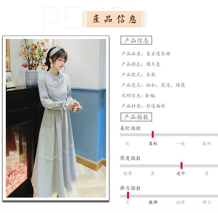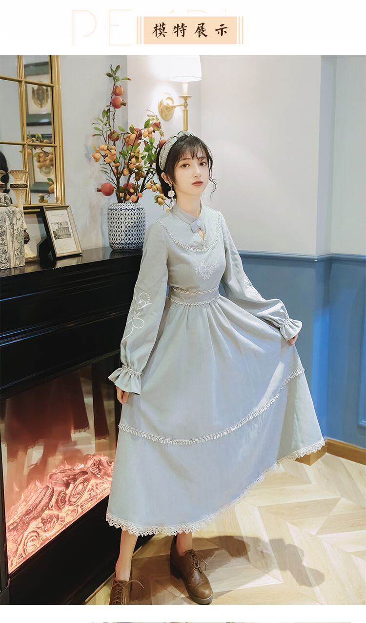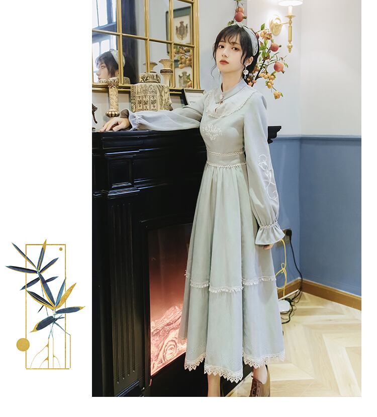 ♥♡♥ スタンダードロングスカート ★長袖スリーブ レトロ スウィート ♥♡♥韓国系 ガーリー お呼ばれ カジュアル フェミニン エレガント ビジュー 清楚 オルチャン AA9739275 | miel style clothing