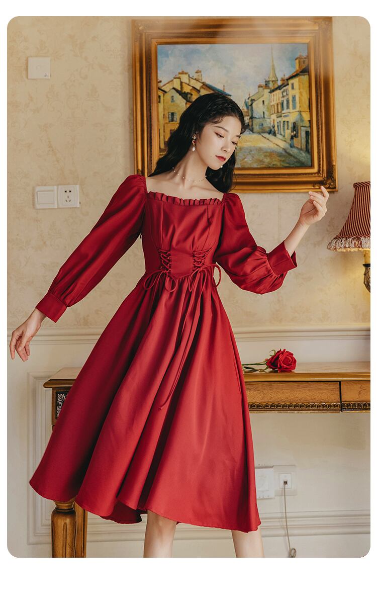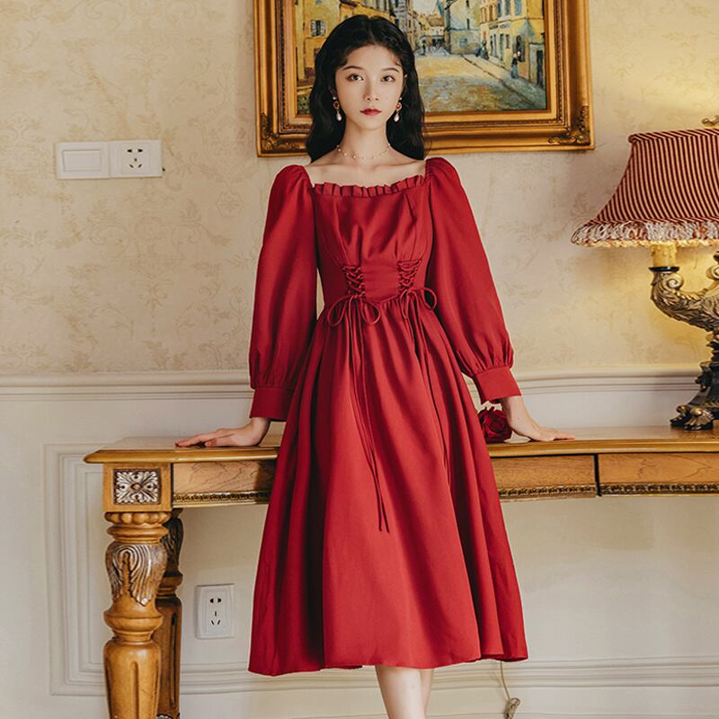 ♥♡♥ ♡レッドスカート スタンダード レトロ レース スクウェア ♥♡♥韓国系 ガーリー お呼ばれ カジュアル フェミニン エレガント ビジュー 清楚 オルチャン AA5388193