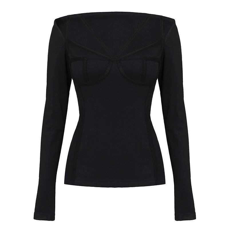 ♥新品 ブラックVネックシャツブラウス セーター スリムショート 韓国系 ガーリー お呼ばれ カジュアル フェミニン エレガント 同窓会 女子会 海 食事会 合コン パーティー BB9277803 | miel style clothing
