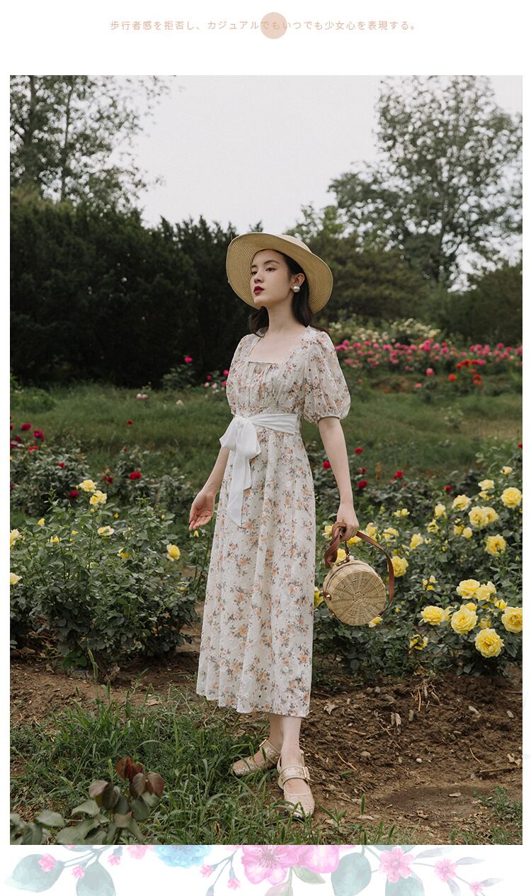 ♥♡♥ スタンダードシフォン花柄ロングマキシ レトロ スカート スクウェア ♥♡♥韓国系 ガーリー お呼ばれ カジュアル フェミニン エレガント ビジュー 清楚 オルチャン AA5757601 | miel style clothing