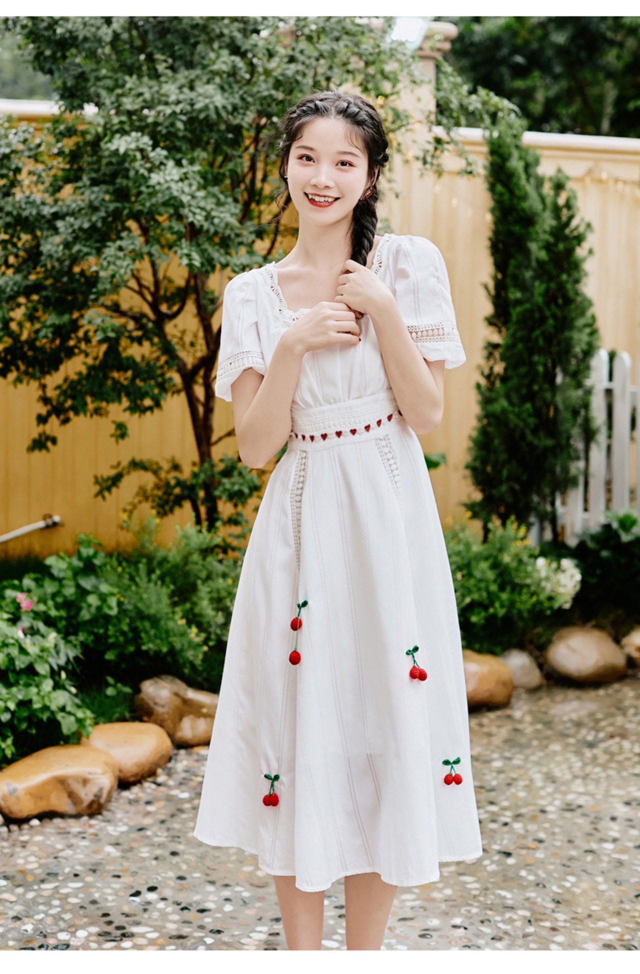 ♥♡♥ スカート ♡スリーブ白 ホワイト レース スウィート フラワーデザイン ♥♡♥韓国系 ガーリー お呼ばれ カジュアル フェミニン エレガント ビジュー 清楚 オルチャン AA0412451