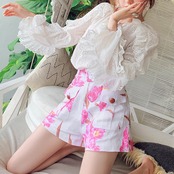 ♥新品 シャツブラウス刺繍白スリーブトップス ホワイト ランタンスリーブ 韓国系 ガーリー お呼ばれ カジュアル フェミニン エレガント 同窓会 女子会 海 食事会 合コン パーティー BB0029179 | miel style clothing