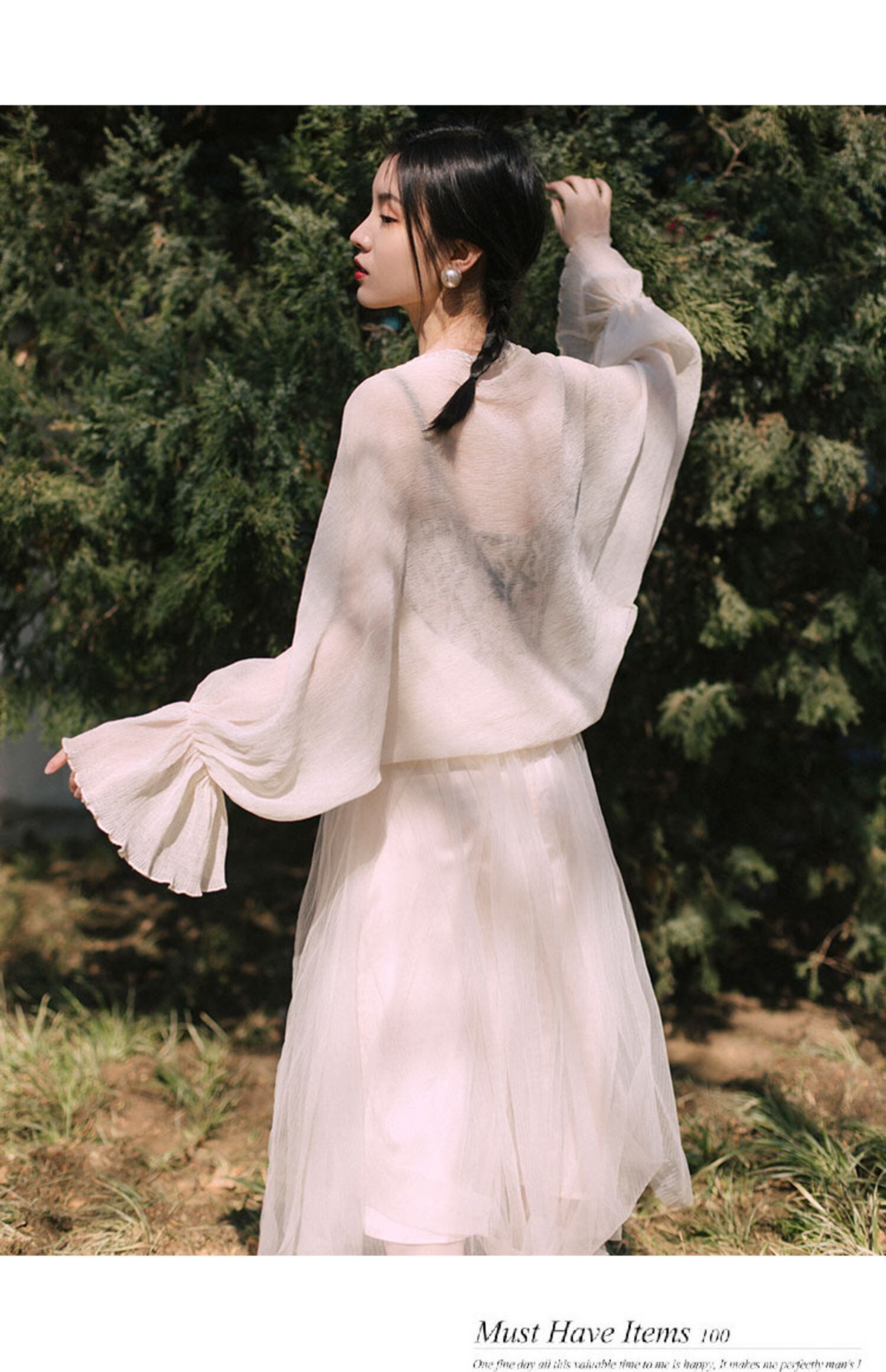 色:日焼け止め服,日焼け防止服+あんこの赤いサスペンダースカート,日焼け防止服+刺繍入り白いサスペンダースカート