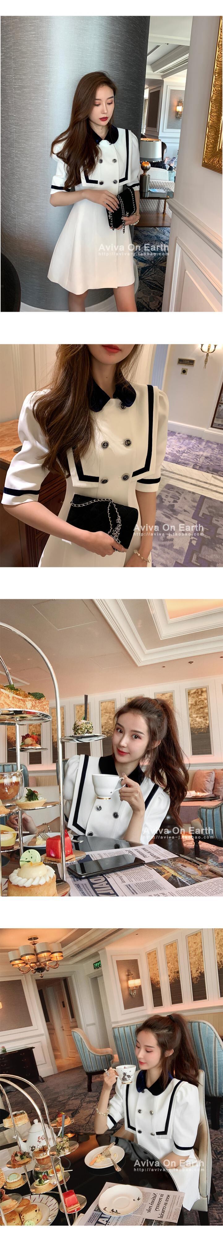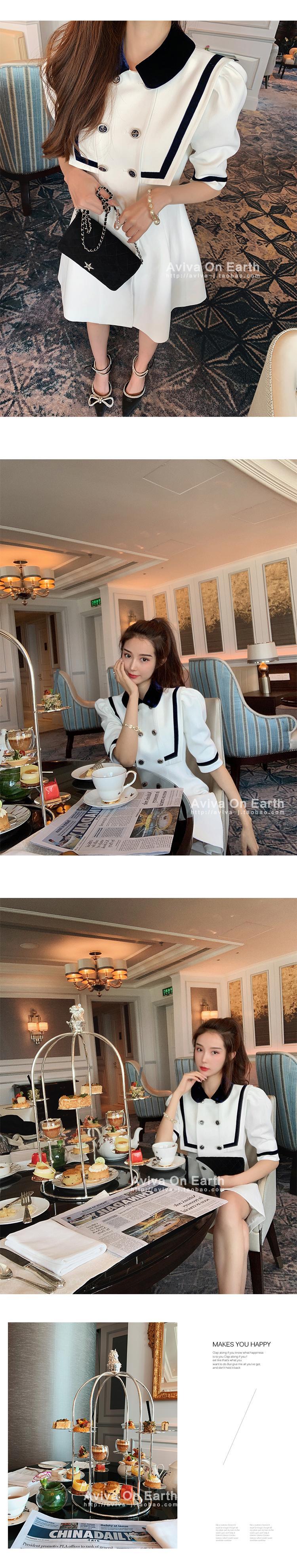 ♥新品 ネイビーカラーボタン★パフスリーブチュニックワンピースOP スカート ホワイト 韓国系 ガーリー お呼ばれ カジュアル フェミニン エレガント 同窓会 女子会 海 食事会 合コン パーティー BB48770831618 | miel style clothing