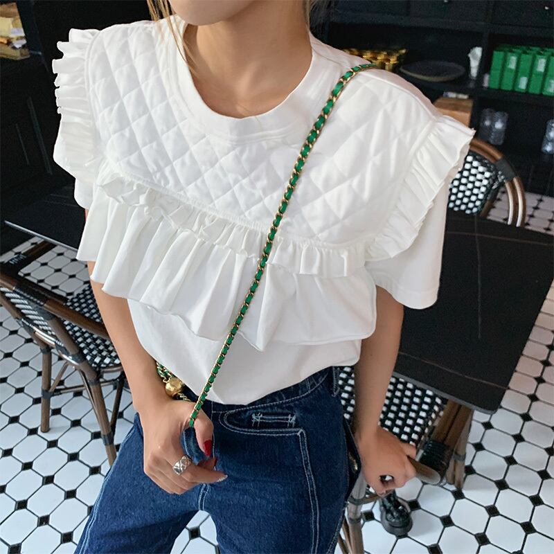 ♥新品 Tシャツ 大人女子☆ コットン 韓国系 ガーリー お呼ばれ カジュアル フェミニン エレガント 同窓会 女子会 海 食事会 合コン パーティー BB4610806 | miel style clothing