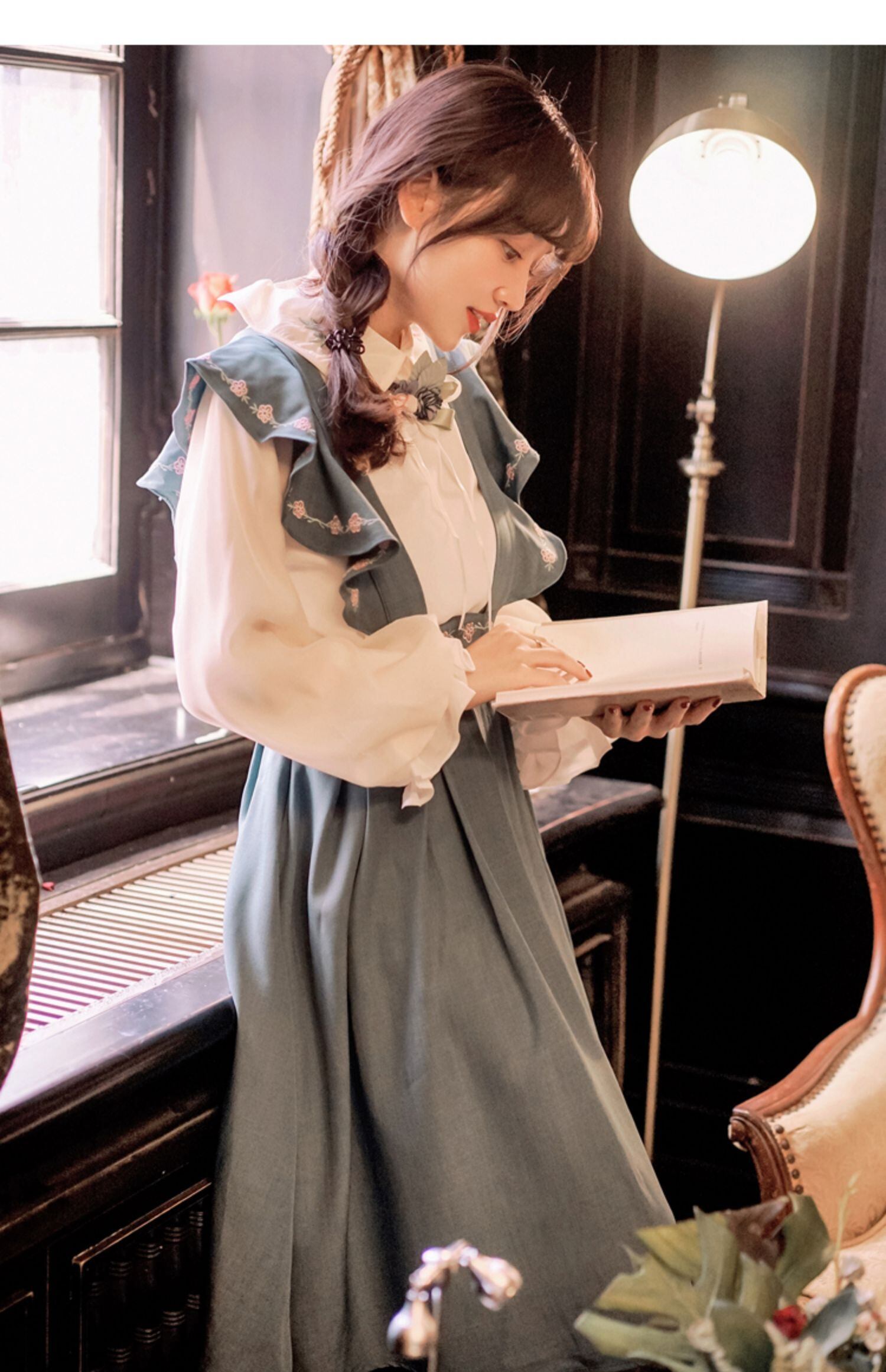 ♥♡♥ オータムスタンダードスカート シャツブラウスセット レトロ 秋物 ♥♡♥韓国系 ガーリー お呼ばれ カジュアル フェミニン エレガント ビジュー 清楚 オルチャン AA7497239