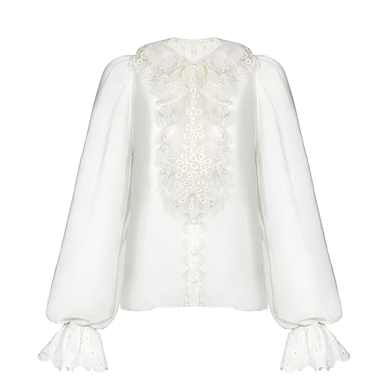 ♥新品 スリーブ白メッシュシャツブラウスレーストップス 大人女子☆ ロング ホワイト ランタンスリーブ 韓国系 ガーリー お呼ばれ カジュアル フェミニン エレガント 同窓会 女子会 海 食事会 合コン パーティー BB1719810