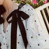 ♥新品 水玉トップス スリーブスタンダードリボンVネック白シャツブラウス ホワイト レトロ 韓国系 ガーリー お呼ばれ カジュアル フェミニン エレガント 同窓会 女子会 海 食事会 合コン パーティー BB4380477 | miel style clothing