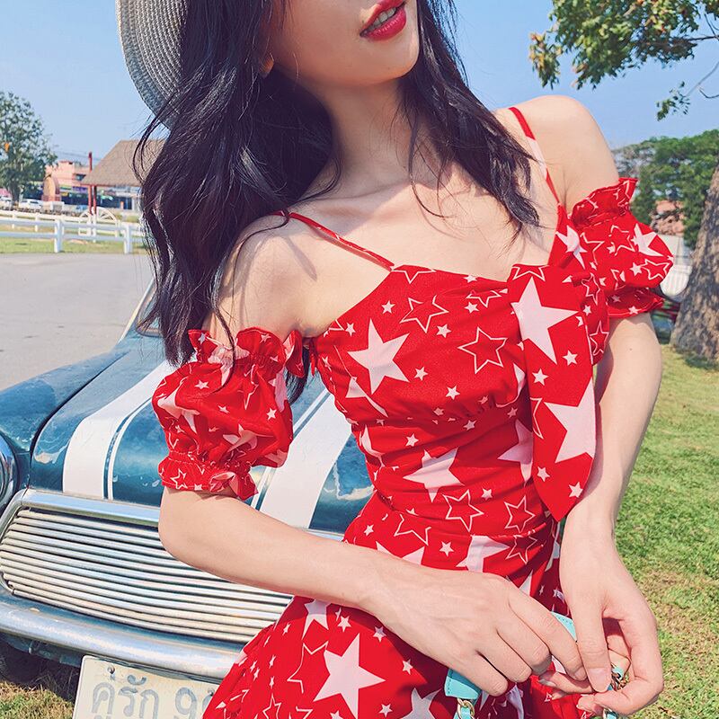 ♥新品 レッドストラップレスプリント柄 韓国系 ガーリー お呼ばれ カジュアル フェミニン エレガント 同窓会 女子会 海 食事会 合コン パーティー BB3076502 | miel style clothing