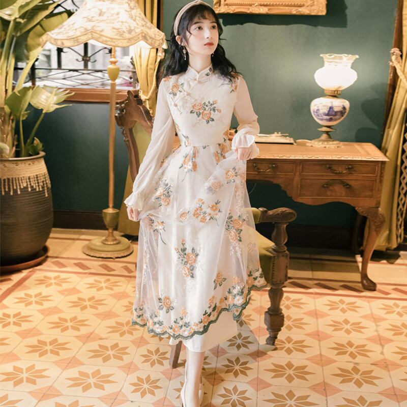 ♥♡♥ スタンダードロングスカート マキシ レッド レトロ 刺繍 ♥♡♥韓国系 ガーリー お呼ばれ カジュアル フェミニン エレガント ビジュー 清楚 オルチャン AA1758911 | miel style clothing