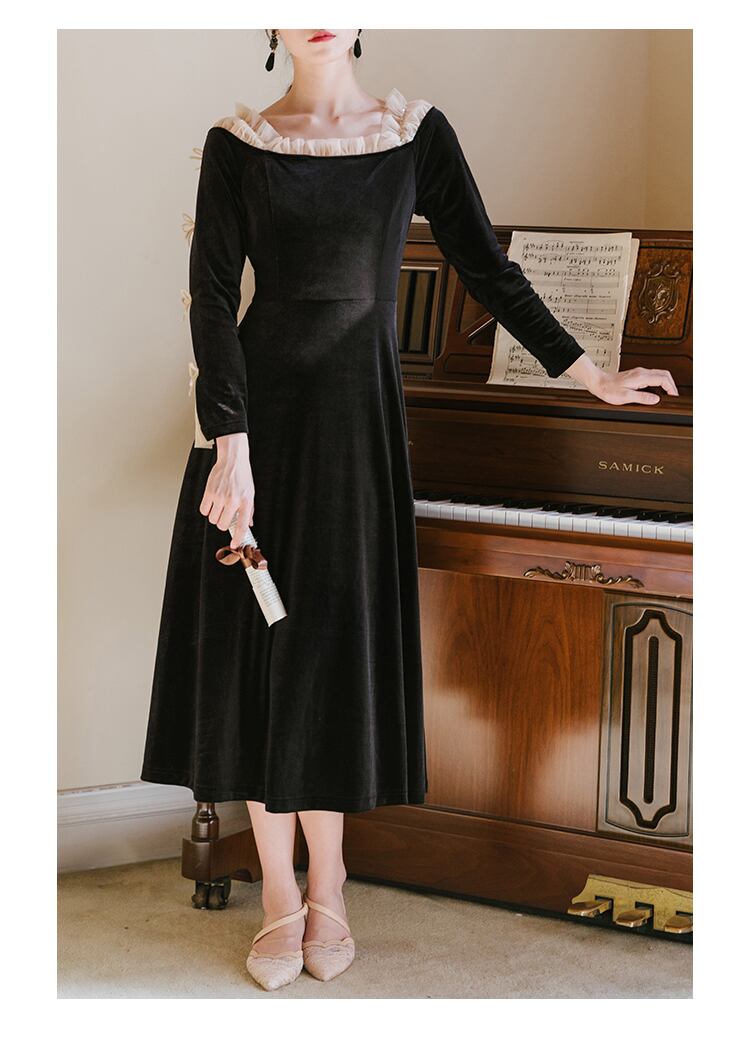 ♥♡♥ スタンダード♡スカート ブラックベルベット レトロ レース ♥♡♥韓国系 ガーリー お呼ばれ カジュアル フェミニン エレガント ビジュー 清楚 オルチャン AA1113218 | miel style clothing