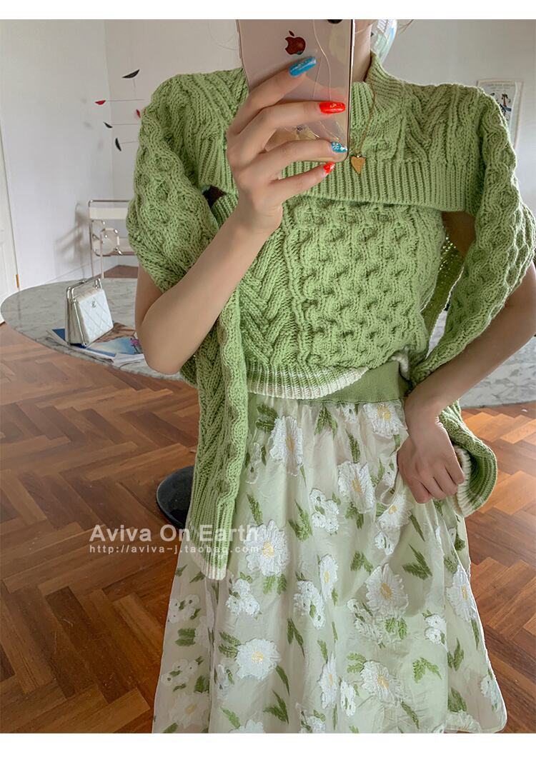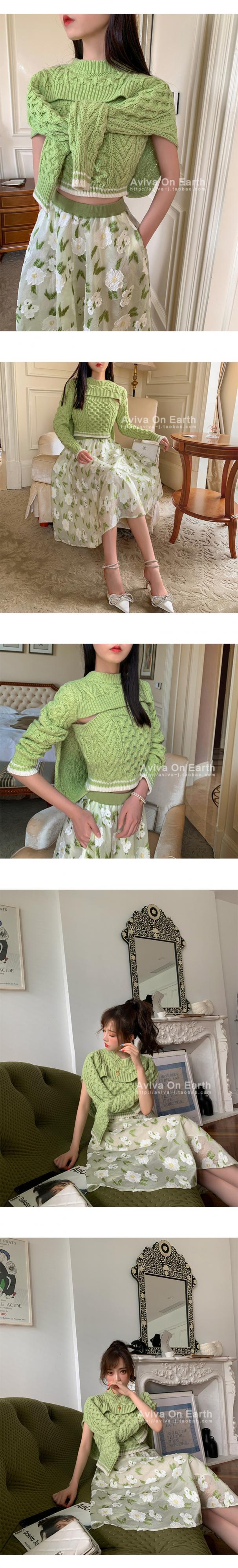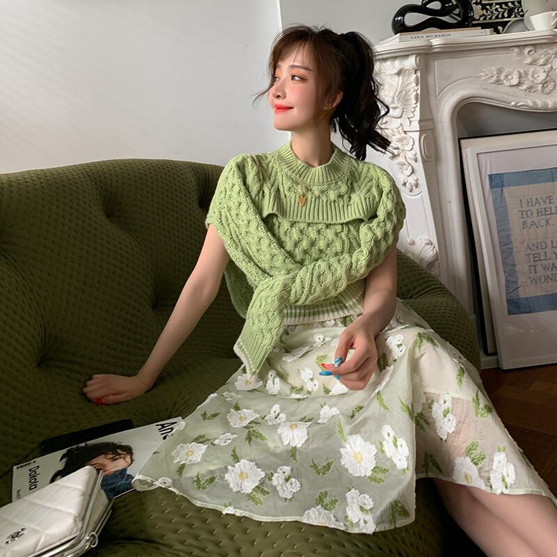 ♥新品 グリーンツーピースショートセーター オータム 秋物 韓国系 ガーリー お呼ばれ カジュアル フェミニン エレガント 同窓会 女子会 海 食事会 合コン パーティー BB4915026544 | miel style clothing