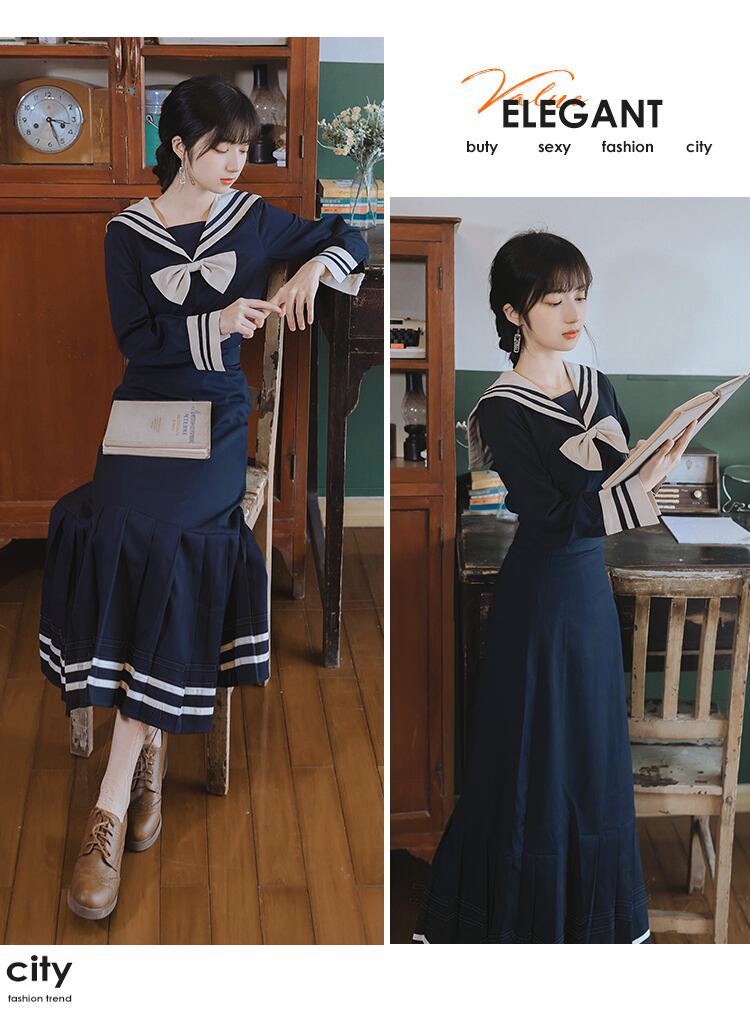 ♥♡♥ オータムスタンダード♡プリーツスカート ネイビー レトロ 秋物 ♥♡♥韓国系 ガーリー お呼ばれ カジュアル フェミニン エレガント ビジュー 清楚 オルチャン AA5030338 | miel style clothing