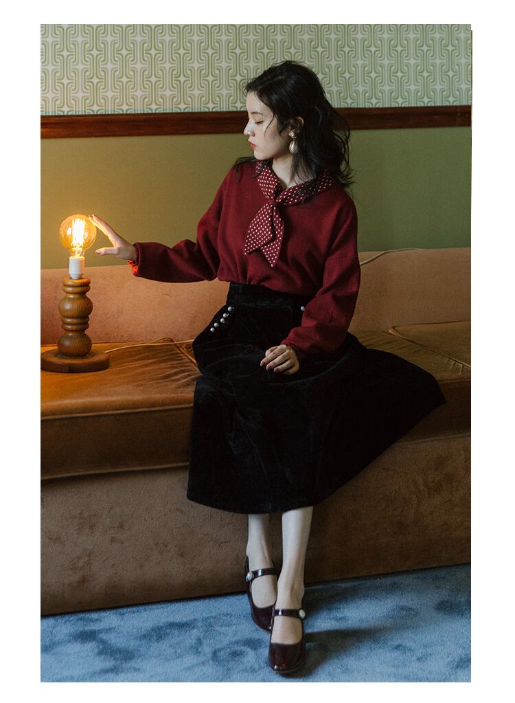 ♥♡♥ スタンダードウィンターセーター ゴールドベルベットスカート ♡ レトロ 冬物 ♥♡♥韓国系 ガーリー お呼ばれ カジュアル フェミニン エレガント ビジュー 清楚 オルチャン AA1554721 | miel style clothing