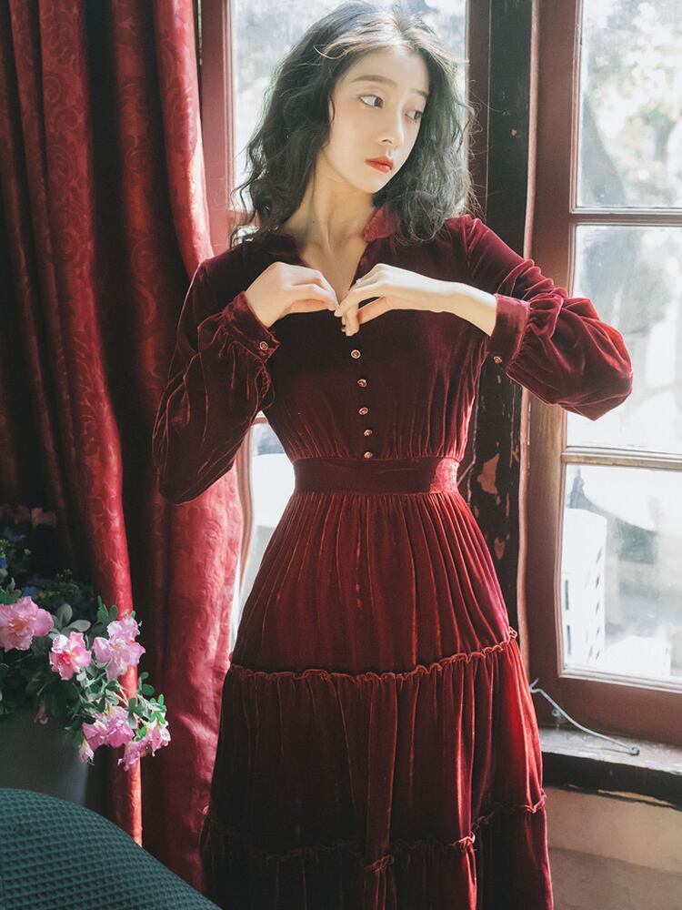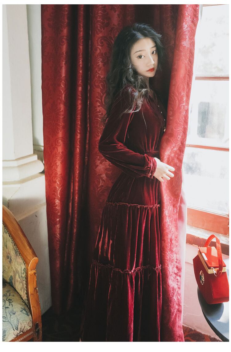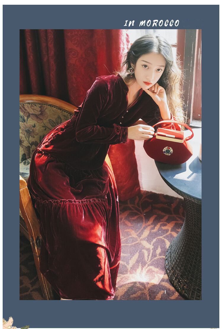 ♥♡♥ スタンダードゴールドベルベット★ロングスカート レトロ ♥♡♥韓国系 ガーリー お呼ばれ カジュアル フェミニン エレガント ビジュー 清楚 オルチャン AA9542983