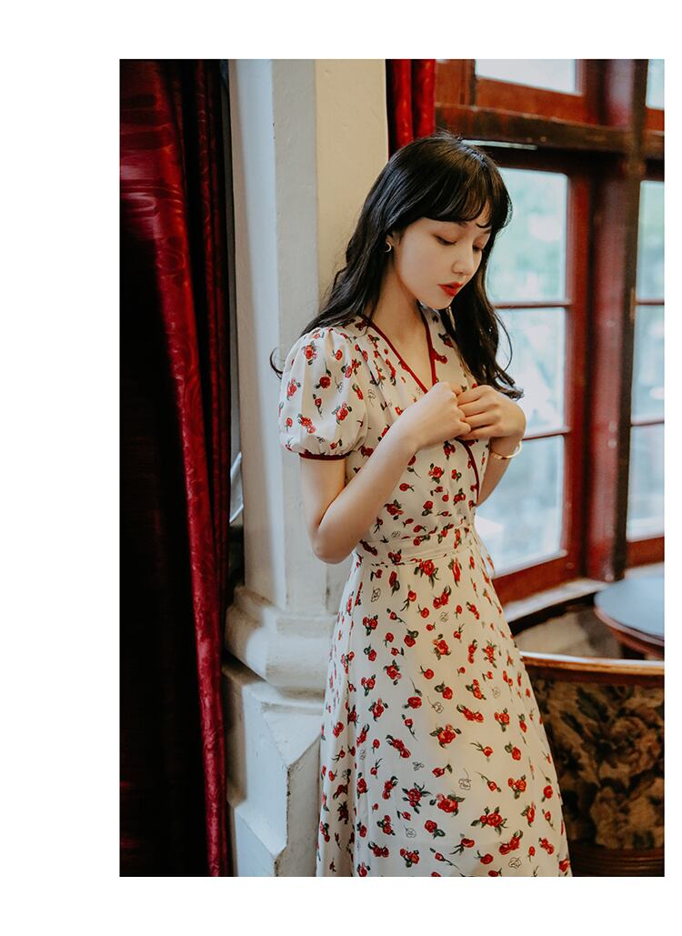 ♥♡♥ ワンピースオレンジスカート 花柄♡シフォン ♥♡♥韓国系 ガーリー お呼ばれ カジュアル フェミニン エレガント ビジュー 清楚 オルチャン AA3259968 | miel style clothing