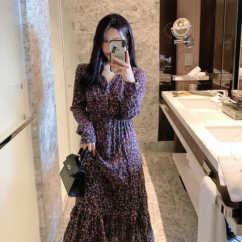 ♥♡♥ サマー花柄♡ロングスカート 夏物 パープル ♥♡♥韓国系 ガーリー お呼ばれ カジュアル フェミニン エレガ ント ビジュー 清楚 オルチャン CC4782777 | miel style clothing