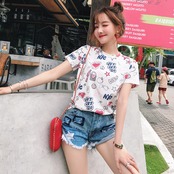 ♥新品 白プリントTシャツ トップス ホワイト コットン ガーリー 韓国系 ガーリー お呼ばれ カジュアル フェミニン エレガント 同窓会 女子会 海 食事会 合コン パーティー BB6293410 | miel style clothing